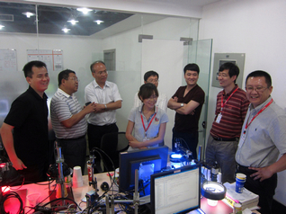 2013年06月06日,喜之郎總部張總一行蒞臨索牌考察、指導(dǎo)工作。左圖為客戶參觀索牌科技技術(shù)中心下屬的CCD視覺(jué)實(shí)驗(yàn)室。右圖為客戶參觀索牌工廠。